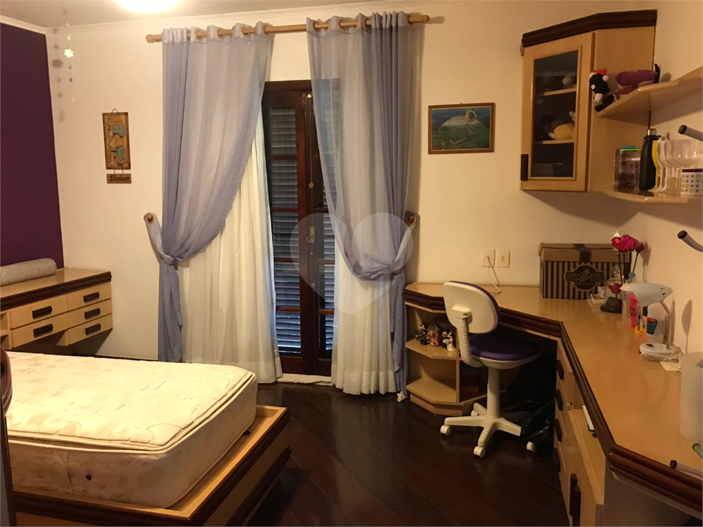 Sala de estar, de TV com lareira e de jantar + lavado. Sala intima no piso superior, 4 Suites sendo 2 com varanda e a master com closed e banheiro com hidro, todas com armários embutidos sendo 3 com camas também embutidas. Ampla copa e cozinha rica em armários. Escritório com armários. 2 lavanderias e 2 suites para empregadas, despensa, garagem para 4 carros, piscina, salão com churrasqueira e quintal. Localização excelente no bairro do City América I, em vila reservada com único acesso e segurança 24 horas. Arborizado e muito tranquilo.