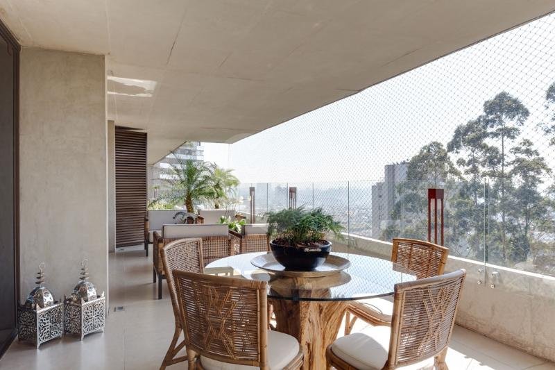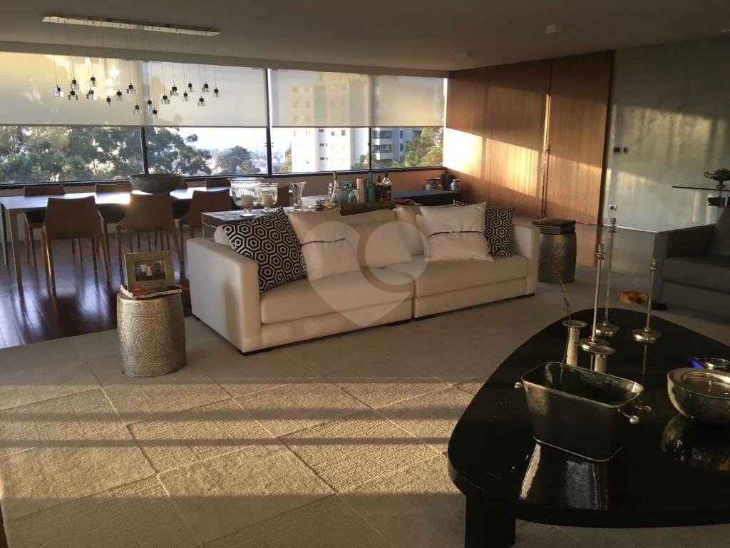 Magnífico apartamento todo reformado com design contemporâneo. Acabamentos de alto padrão. Um por andar com hall privativo. Ao lado da mais reconhecida escola americana de São Paulo _ Graded School _ e próximo a todos os melhores colégios da cidade: Porto Seguro, Miguel de Cervantes, Santo Américo etc Vão livre ampliando espaço e com melhor aproveitamento de luz e ventilação. Lavabo, sala com quatro ambientes bem espaçosos, cortinas da Arthur Design com controle remoto, lareira e sala de almoço. Varanda com dois ambientes, guarda-corpos de vidro e tela de proteção. Andar alto indevassável e com vista maravilhosa. Quatro suítes com acesso para varanda, closet. Espaço para prataria e rouparia. Ar condicionado Split quente e frio em todos os quartos. Todas as portas pivotadas. Cozinha com muitos armários e com bancada em ilha, área de serviço, despensa e dois quartos de serviço. Três vagas de garagem. Adega individual no subsolo, box e sala de motorista na garagem. Condomínio tem academia muito bem equipada, salão de festa, quadra poliesportiva, piscina aquecida, sauna, churrasqueira, playground , salão de jogos e maravilhoso bosque. Segurança 24h com controle de entrada. A negociação inclui alguns moveis se desejarem. Tudo nos mais altos padrões de estilo e conforto.